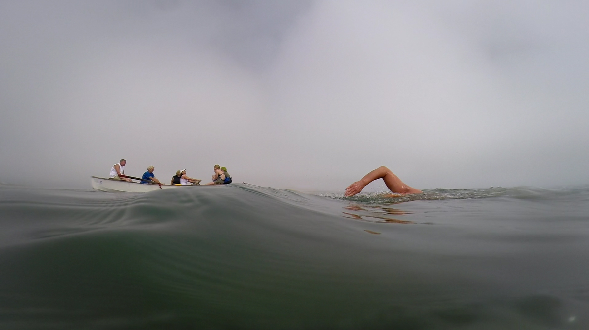 On 22nd July 2015 Vanessa Daws swam solo from the huts at Low Rock in Malahide to Lambay Island, the distance of 8K as the crow flies. This was the 2nd swim in a series of ongoing artworks, the “Lambay Swims” based around Lambay Island in Dublin Bay.